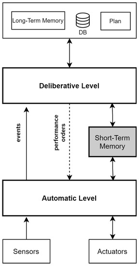 - Communication between the automatic level and the deliberative level is bidirectional, through the short-term memory (STM).