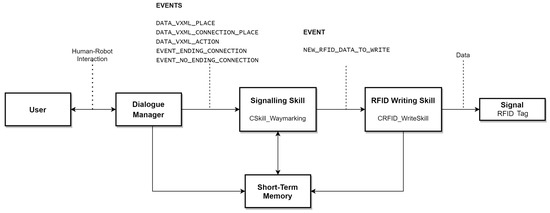 To start the signaling process, the robot must acquire the information to write to the signal. The sources of information can be very varied, from asking a person to reading it on another signal and deducing what to write. This work focuses mainly on the acquisition of information through human–robot interaction and the writing/updating of data stored in the signals.