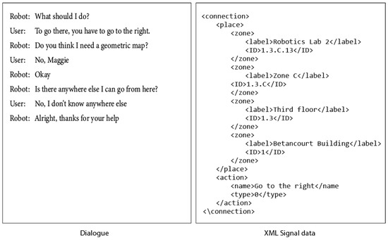 The naturality of the interaction and the quality of information given to the robot have been studied in [11]. The authors have designed a dialogue system for giving route instructions to a robot. They base their study on a comparison between human-human interaction and human–robot interaction. The authors aim to analyse the level and quality of information (granularity) that a user expects from a machine to guide him to his destination in the navigation task and the knowledge that a user can provide to a machine. In their research, they conclude that while giving guidance instructions to a human is about achieving a higher level of information detail, to a machine the user prefers to give basic movement instructions such as “turn right” or “continue forward” so that the instructions given to a machine specify the step-by-step movements during navigation.