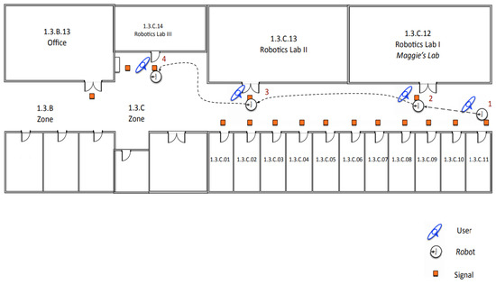The autonomy of robots is one of the main researchers objectives in recent decades [1,2]. One of the basic tasks to achieve autonomy for a robot is to move in unknown environments and reach a given destination, just as we humans do. In humans, this process is called “Wayfinding” [3]. In robotics, the term known is “Navigation” [4,5,6,7]. Studying the navigation of social robots is a complex issue involving the robot’s capabilities, the human, the proxemics, the social context, and the environment [8].