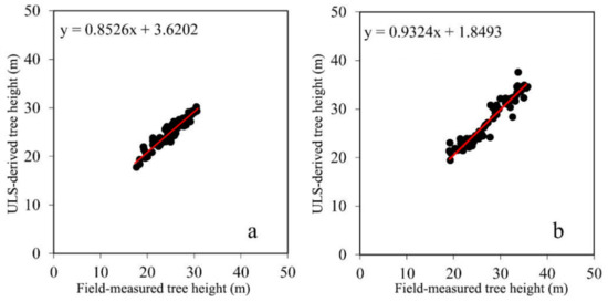 g) in the sample area was calculated by using the tree height information obtained with the ULS data. According to the D