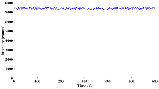 From Figure 9, the standard deviation of experimental data was 1.22% of the average of detected data. According to experimental data, the performance of the spectrometer employed was stable over time. Hence, drift over time barely existed in the spectrometer.