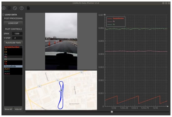 A Multimodal GUI has been also developed, to visualize all the LSL streams across the network. Numeric streams are plotted in a common central plot, while text streams are visualized as timestamped single events. Visualization plugins have been developed for some stream types-like EEG, ECG, EMG, quaternions, videos-to display data in a custom way; for instance, quaternions are visualized as floating cubes, GPS locations are displayed on a map, whereas electrophysiological streams have custom plot display modes. The Multimodal GUI can handle both online streams in real-time, as well as previously acquired XDF recordings. Figure 1 shows the data from an in-car experiment acquisition.
