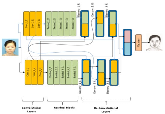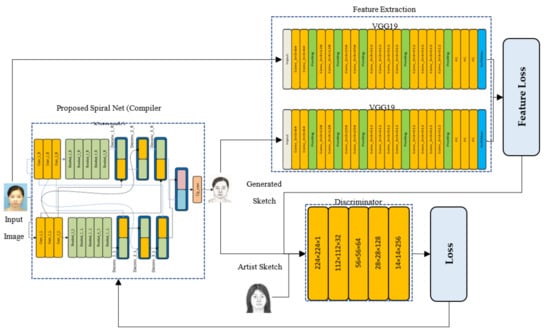 - A novel/modified structure of a residual network with skip connections forming a spiral-like shape to act as a compiler entity in the proposed face sketch synthesis phase. The overall scheme is motivated by [], and a similar approach is presented in [].