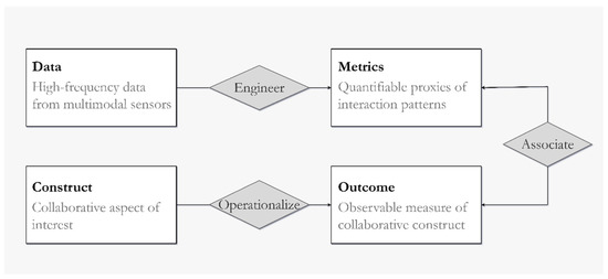 This paper contributes the following: (1) a model of research that conceptualizes how constructs relate to sensor data, (2) a taxonomy to categorize collaborative outcomes and metrics, and (3) a map of metric–outcome connections in prior research, supported by an interactive online visualization. We also provide (4) an empirical analysis of how theory is used to connect data to constructs.