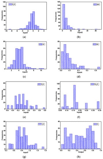 Figure 2 depicts the statistical distributions of the input and output variables. To reflect the same feature scale, the input variable was converted to a range of 0 to 1 using max-min normalization.