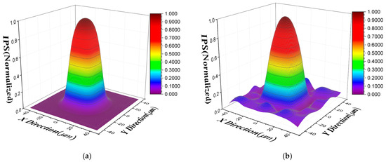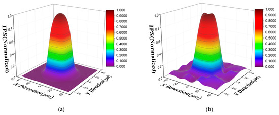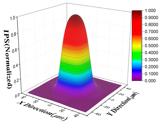 Then we simulated the beam spot to scan the target pixel and obtained the simulated scanning response map, and the size of the simulated beam spot was 3 μm. The IPS is then solved based on the proposed DCP model and DSPR model, which can be shown in Figure 4. It can be noticed that the calculated IPS based on the DCP model is closer to the true simulated IPS than the DSPR model.