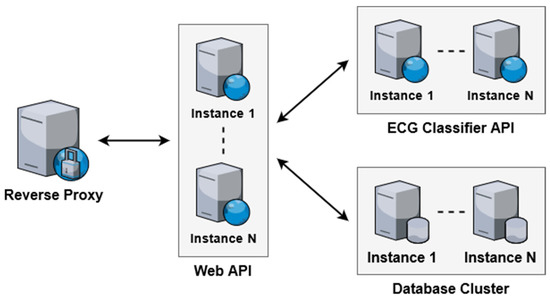 In the proposed system, the three major areas that affect overall scalability are the maximum number of concurrent requests, processing speed of these requests, as well as data access and storage capabilities. The two components responsible for handling all incoming requests are the web API and ECG classifier API. On the other hand, the database is the sole component that affects the data access and storage capabilities.