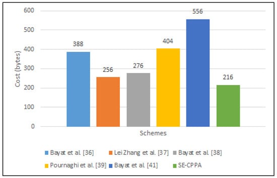 The communication cost of each scheme is presented in Table 7. Figure 8 compares the communication overheads of the SE-CPPA and the other schemes.
