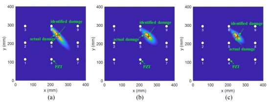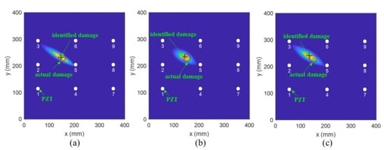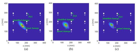 The PDI method is an imaging method based on the damage index and the weight distribution function to estimate the damage probability of each point in the monitoring area. The damage probability of each pixel can be determined using the equation below []: