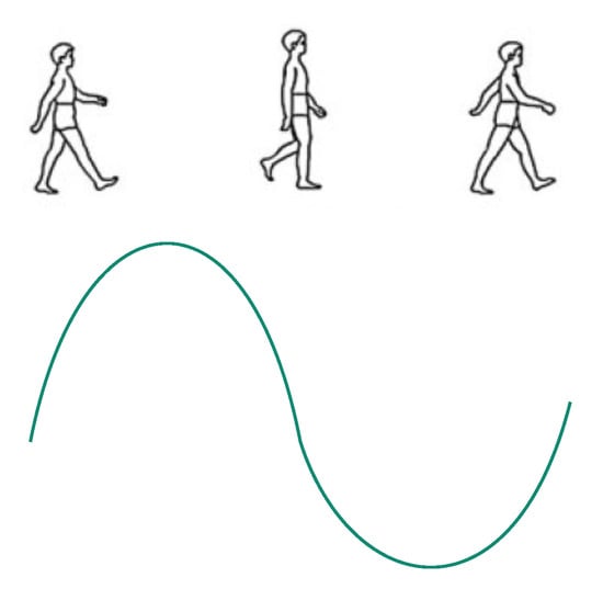Gait-based step length estimation has been successfully applied in low-end inertial sensors [28]. Vertical displacement is periodic while a pedestrian walks, as illustrated in Figure 2.