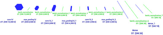 The third CNN model is intended to recognize raw samples of vector signals. The first processing layers are comparable to structures described above, although input of the model is quite large with 335,544 samples and the last layers are transpose convolution layers [64]. Figure 9 and Table 5 presented below describe the model in more detail.
