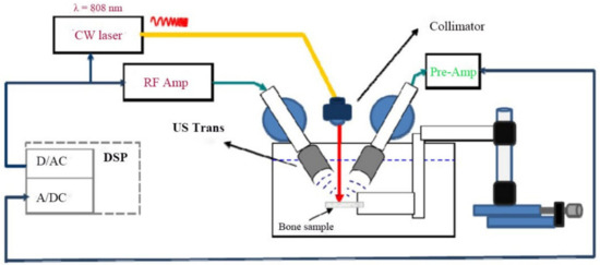 - Lashkari, B.; Mandelis, A. Coregistered photoacoustic and ultrasonic signatures of early bone density variations. J. Biomed. Opt. 2014, 19, 36015. [Google Scholar] [CrossRef] [PubMed]