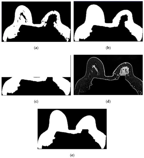 - Al-Faris, A.; Ngah, U.; Mat Isa, N.; Shuaib, I. MRI Breast Skin-line Segmentation and Removal using Integration Method of Level Set Active Contour and Morphological Thinning Algorithms. J. Med. Sci. 2013, 12, 286–291. [Google Scholar] [CrossRef][Green Version]