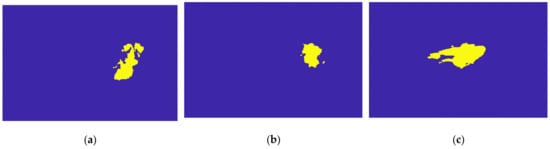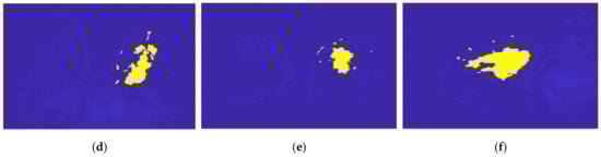 Accurate tumour segmentation is of utmost importance for tumour evaluation and extraction of its characteristics. This task is very challenging as breast lesions widely vary in shape and intensity distribution. Strategies based on data clustering, particularly unsupervised clustering methods such as K-means and Fuzzy C-means, have been used for breast tumour segmentation using MRI exams [,,,]. Such methods group a set of data objects of the whole image/volume into clusters by maximizing intraclass similarity and minimizing interclass similarity. The proposed approaches using K-means in [,] and Fuzzy C-means in [,] outperformed standard techniques and showed high accuracy in segmenting breast tumours. A semi-automatic algorithm using a marker-controlled watershed method proposed in [] was proven more efficient in connecting disjoint areas in lesions compared to classical K-means clustering and Gaussian Mixture Model clustering []. Thakran et al. [] developed an automatic methodology for breast tumour segmentation based on Otsu thresholding.