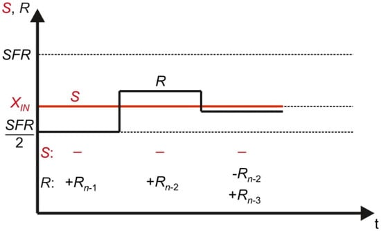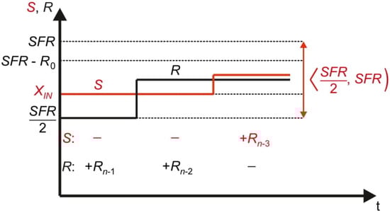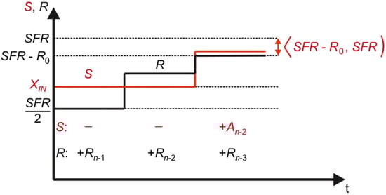 Similarly to the models of the previously presented SA algorithms, the bits in the digital output word bn−1, …, b0 are evaluated successively, starting from the most significant bit bn−1. At the i-th step of the conversion process (i = 2, 3, …, n + 1), if the reference signal R is not greater than the source signal S the bit bn−i + 1 is set to logic “1”. Otherwise, the bit bn−i + 1 is set to logic “0”.