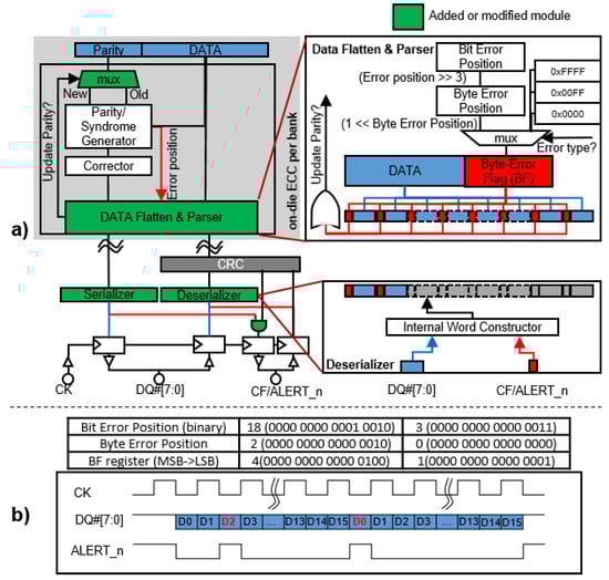 - Patel, M.; Kim, J.S.; Shahroodi, T.; Hassan, H.; Mutlu, O. Bit-exact ecc recovery (BEER): Determining DRAM on-die ECC functions by exploiting DRAM data retention characteristics. In Proceedings of the 2020 53rd Annual IEEE/ACM International Symposium on Microarchitecture (MICRO), Athens, Greece, 17–21 October 2020; pp. 282–297. [Google Scholar]