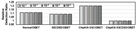 - Nair, P.J.; Sridharan, V.; Qureshi, M.K. XED: Exposing on-die error detection information for strong memory reliability. In Proceedings of the 2016 ACM/IEEE 43rd Annual International Symposium on Computer Architecture (ISCA), Seoul, Korea, 18–22 June 2016; pp. 341–353. [Google Scholar]