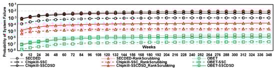 - Nair, P.J.; Roberts, D.A.; Qureshi, M.K. Faultsim: A fast, configurable memory-reliability simulator for conventional and 3d-stacked systems. ACM Trans. Archit. Code Optim. (TACO) 2015, 12, 1–24. [Google Scholar]