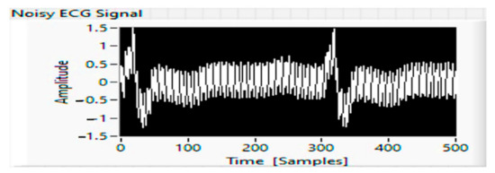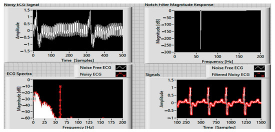When acquiring medical signals, there is a risk that the useful information from the subject will be “contaminated” by certain interference induced by the instrumentation amplifier, the signal recording system, or electromagnetic waves from the electronic equipment of a transport vehicle. To these, in many cases, the mains noise (50 or 60 Hz) and its harmonics if the system is powered from the mains are added, with the 50/60 Hz interference being considered a high frequency artifact if we take into account that the spectrum the EKG signal is par excellence a low frequency one (up to 100 Hz) [44,45,46].