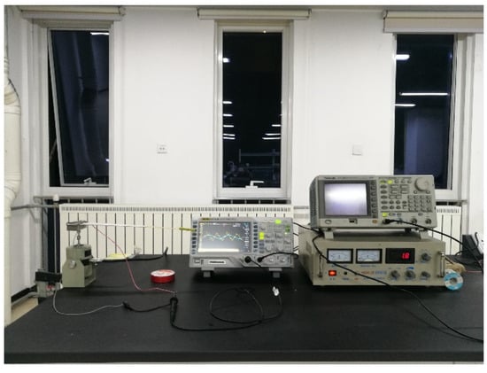 A power amplifier and a hev-20 high energy exciter were used to test the power generation capacity of a triangular PCB. Adjust the power amplifier to increase the frequency slowly to make the cantilever start to vibrate until it reaches resonance, as shown in Figure 20. The capacitor voltage value tested by the oscilloscope and the corresponding frequency tested by the power amplifier were recorded, and the relationship curve between voltage and frequency was plotted, as shown in Figure 21.