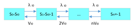 Condition 7: The spare parts demand–supply strategy of each grade site is (S-1, S) inventory strategy in (s, S) inventory strategy [25]. (s, S-1) inventory strategy is continuous inventory [50,51]. Once the inventory level is less than s, the maintenance station will order immediately. The order quantity makes the inventory level at the order time reach S. Otherwise, no order is made. Therefore, the inventory strategy of (s, S-1) in this paper is that, once there is a good demand, we order the goods to the manufacturer once regardless of whether there are any goods in the inventory. If there are any goods, we submit one delivery. Otherwise, there is a shortage of goods.