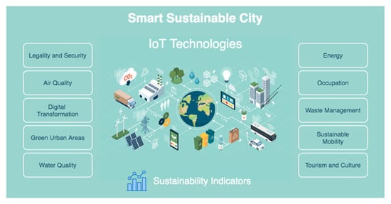 Smart cities play an important role as innovation drivers for businesses in a variety of industries, including health, the environment, and information and communication technology (ICT). The future smart city leverages smart innovation ecosystems to improve the overall quality of life of citizens []. Smart cities aspire to turn rural and urban regions into democratic innovation hubs [,], with innovation ecosystems boosting the collective intelligence and co-creation capacities of user-citizen communities to develop creative living and working spaces. As shown in Figure 1, smart cities are pioneering open, user-driven innovation in order to demonstrate the benefits of future internet-enabling services. Smart cities could be established and developed using advanced ICT infrastructure and Internet of Things (IoT) devices. The IoT has been identified as a determining pillar of ICT, characterised as a huge network architecture built on the capacity to share information and connect it with physical items, such as electric automobiles or drones [] and virtual “things” []. The IoT is comprised of digital technologies, semantic languages, and virtual identities []. The IoT enhances the reliability and effectiveness in operation and administration of smart ecosystems []. For example, the installation of smart sensors in San Francisco Park allowed customers to get instant information while waiting for a parking spot, reducing wait times []. Smart sensors collect data that can be transferred to devices through a wireless link and proprietary software. A smart grid capable of handling fluctuating power supplies will be necessary for the future sustainable cities. One of the major aims is to use local renewable energy sources as much as is feasible [,,]. Solar panels and batteries can be deployed on a larger scale in cities as part of such a system. They will be able to communicate with the grid and provide and store electricity in accordance with changes in demand. In addition, small-scale energy-harvesting systems, such as vibration-based harvesters, have attracted the attention of many researchers over the last decades [,,].