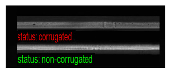 Both corrugated and normal samples were shuffled, and the dataset was split into 60% for the training set and the remaining 40% for the test set. As each frame has a resolution 2048 × 2048 pixels, concatenating eight frames results in 2048 × 16,384 pixels. Each frame covers 16.05 cm, and thus the eight frames cover a rail length of 1.28 m.