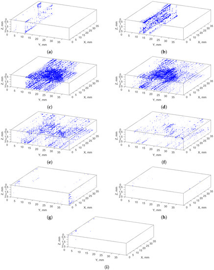 Figure 10 illustrates the V, H and D masks after building 3D arrays from the obtained 2D masks and, for better readability of the results, removing the background (for this purpose, an additional mask with a 2D shape of damage from the top view was extracted).