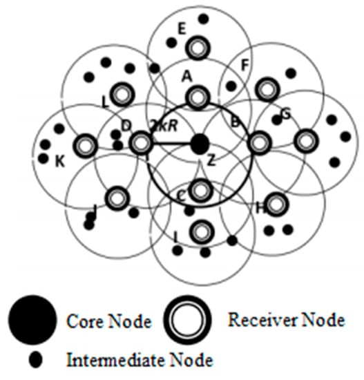 ODMRP [19] is a sender-initiated mesh-based routing protocol. The concept of forwarding group for data transmission is used in ODMRP. The idea of the core node is used in ODMRP for the update and maintenance of the group. In ODMRP, the data are transferred from the sender to the destined receiver; then, the sender receives an acknowledgement for the successful reception of the data. On the other hand, if a sender does not entertain ACK, the packet will be transmitted again. This retransmission decreases the efficiency and reliability in terms of overhead, usage of energy and throughput. Likewise, CAMP, AODV [20] and efficient zero-control-packet broadcasting for mobile ad hoc networks (ECHO) [21] are sender-initiated routing protocol and use flooding within the mesh for successful communication.