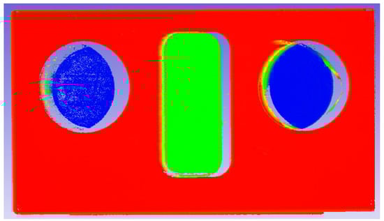 In Figure 8, the test piece was placed within the measurement range of the self-rotating, LSL scanning, 3D reconstruction system, and the self-rotating, LSL scanning, 3D reconstruction system was controlled to scan and collect the point cloud of the test piece’s surface.