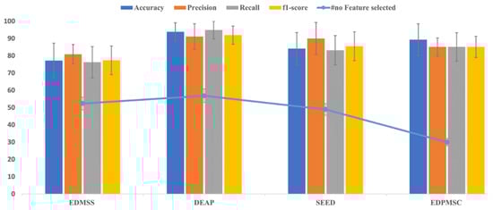 | [70] | SEED, DEAP | DWT-BODF (SVM, KNN) | 225 × 30 SEED 576 × 40 DEAP | 62 SEED 32 DEAP | 93.8% SVM (SEED) 77.4% SVM (DEAP) |