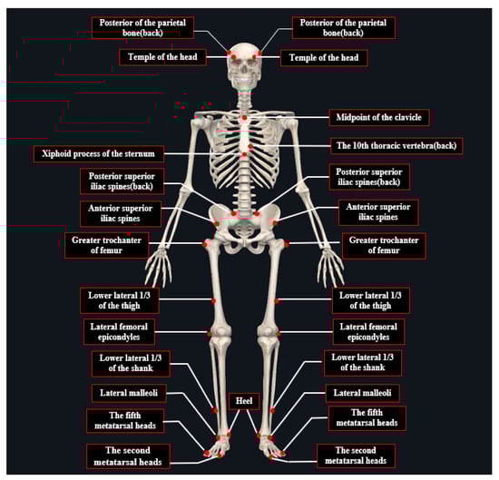 The subjects dressed in tight test clothing and pasted markers on their body joints according to the Plug-in-Gait lower limb model. Twenty-seven reflective markers were placed at the following anatomic location (Figure 1).