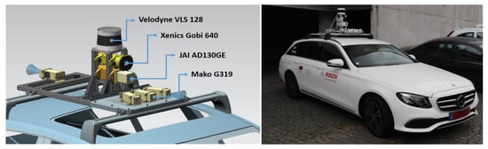 Additionally, in the same year, Montemerlo et al. [30] presented Junior, a robotic vehicle also capable of navigating urban environments autonomously, achieving second place in the same competition. In this challenge, the Boss vehicle platform had roughly twice the amount of LiDAR sensors and also used two camera sensors. Google’s Waymo [34] also uses LiDAR, camera, and RADAR sensors for perception tasks, and also includes an IMU, GPS, and audio capturing sensors such as microphones. Additionally, many vehicles have been used as mobile platforms for dataset creation, which pushes AD research forward. An extensive survey on the existing multi-modal datasets and corresponding data vehicles used can be found in [34]. Two of the most used datasets in the field of research are KITTI and nuScenes. KITTI is a multi-sensor moving platform aimed at enabling research on stereo, optical flow, visual odometry/SLAM, 3D object detection, and 3D tracking tasks [3]. The vehicle platform features stereo camera systems, a LiDAR sensor and an OXTS RT 3003 localization system, which combines GPS, GLONASS, an IMU, and RTK correction signals. According to the authors, to compensate ego motion in the 3D laser measurements, they used the position information from the GPS/IMU system. nuScenes is a public large-scale dataset for AD developed by Aptiv Autonomous Mobility and is a multi-sensor/multimodal moving platform that can be used for multiple computer vision tasks, such as object detection and tracking. As with KITTI, the vehicle platform features an array of sensors including RGB cameras, LiDAR, and RADAR sensors.