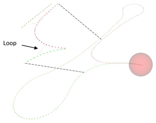 Figure 9 illustrates a trajectory, with a duration of 123 s, at a sampling rate of 10 Hz frames/point clouds that composes this trajectory containing, on average, 170,000 points. Figure 10 shows the effect of accumulated error drift for trajectories that end at the start point. The efficiency of the odometry process to this trajectory is 0.01 s, and the drift error is near to 11.1 m.