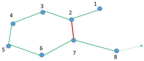In the example displayed in Figure 5, Pt = {1,2,3,4,5,6,7,8} corresponds to the car trajectory. However, there is another path, P2 = {1,2,7}, which can be defined from vertex {1} to vertex {7}.