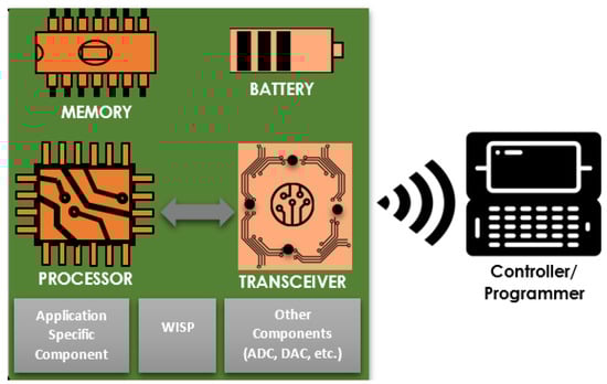 IMDs play a critical role in sensing vital physiological information, which is then sent out to an external device via the wireless medium for different actions, such as remote monitoring and drug delivery. Typically, such systems are assembled from various components, as shown in Figure 1, among which the following are the main ones.