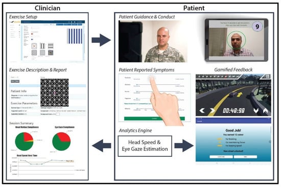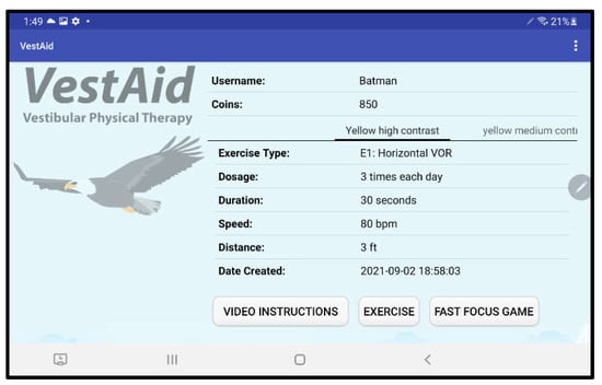 An integral part of vestibular rehabilitation is an individualized home exercise program that a clinician prescribes to address a patient’s particular functional limitations and impairments [,]. Vestibular rehabilitation is most effective when applied in a customized fashion []. Evidence shows that patients who are compliant with home exercise regimens—following them for extended time periods—demonstrate greater improvement than those who do not []. However, providing patient-compliant, home-program vestibular rehabilitation exercises is challenging due to patients’ difficulty in understanding and following the instructions, their lack of motivation, a lack of feedback to the patient, and other adherence issues. There is a higher chance for the success of the home exercise program if the patient (a) understands the exercise procedure, (b) follows the therapists’ instructions, (c) and provides pre- and post-exercise symptoms and perceived difficulty between visits that the clinician can use to give feedback on performance (knowledge of results).