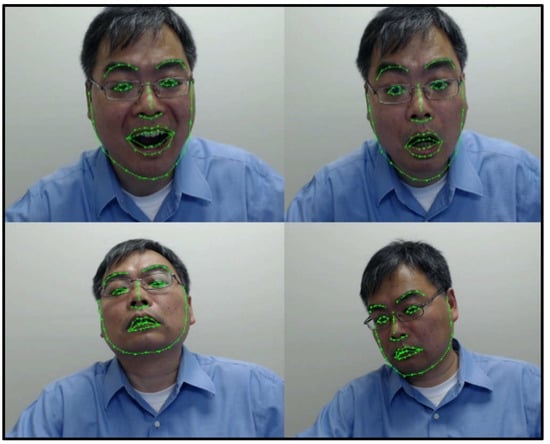- Xiong, X.; de la Torre, F. Supervised descent method and its applications to face alignment. In Proceedings of the IEEE Conference on Computer Vision and Pattern Recognition, Portland, OR, USA, 23–28 June 2013. [Google Scholar]