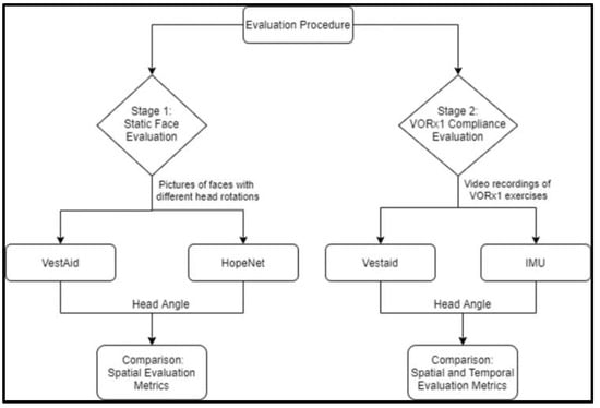 The first stage was to compare the accuracy of estimated head angles against a state-of-the-art deep-learning method on a public dataset. Once we established that the algorithms perform well on static face figures from the public dataset, we conducted the second evaluation, i.e., the evaluation of the head-speed compliance metric resulting from the implementation of the algorithms in the app.