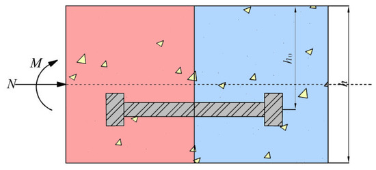 In Figure 13, the shield segmental joints are mainly composed of concrete and bolts as the main force-bearing components, subjected to the combined axial force and bending moment in the soil layer; h0 is the distance from the segment’s compression zone edge to the bolt’s centroid, and h is the segment’s section height.