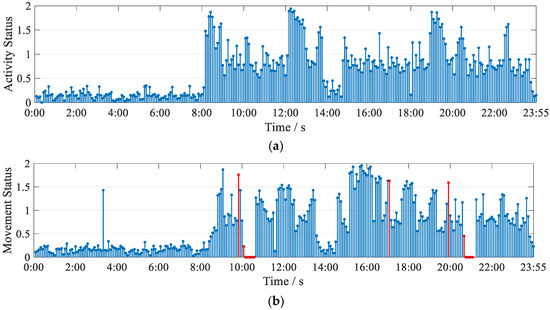 Figure 13. Activity status map: (a) experimenter 1 24 h activity status map; (b) experimenter 2 24 h activity status map.