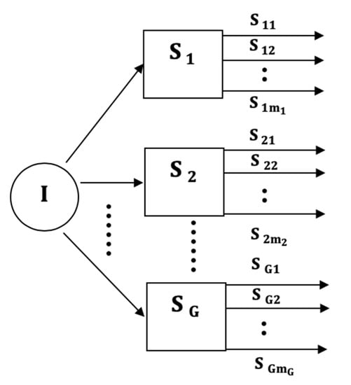 The VI model, shown in Figure 1, is straightforward because it does not involve any form of input-level fusion. The figure simply shows the labeling of the sensors and the sensor outputs. This model is suitable for systems that classify each uniaxial signal independently. The number of independent classifiers in such a system, therefore, is . Systems using this input model need fusion at the output level to determine the class of the movement signal. Of the four input models, the VI model is the most versatile because the sensors can be heterogeneous and can have a different number of axes. Furthermore, the sensor outputs can have different durations and do not have be synchronized with respect to non-linear variations. However, the resulting classifiers are the most complex because they require a classifier for each multi-axial signal and output-level fusion to combine the information from the classifier outputs in order to determine the input class.