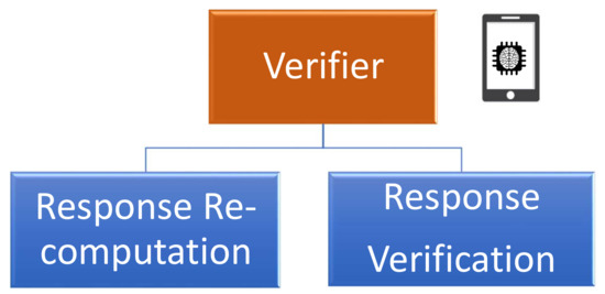 The verifier role is considered as the local root of trust that initiates the challenge–response process with the prover, as illustrated in Figure 8. This component plays a crucial role in generating the enrollment challenges and in verifying the validity of the received obfuscated responses. In this context, the verifier takes advantage of the received PUF model from the authentication server to perform the enrollment process, as illustrated in Figure 10. The verification responsibility can be divided into two main parts: