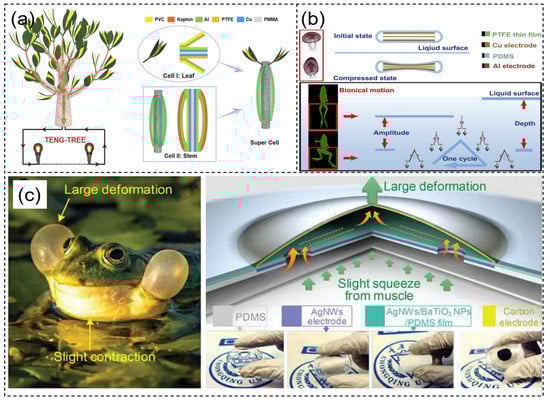 Complete imitation of biological movement is not required in most cases; rather, a combination of biological and TENG techniques should be used to construct the components. Therefore, TENGs have ample room for new structural designs inspired by nature.
