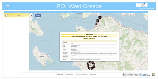 In Figure 8 a dashboard is depicted that represents some POIs (hotels) in western Greece by exploiting the multi-data map widget. These data are collected and modeled as POIs from Excel files (according to the formal model illustrated in Section “Formal Model for POIs”). Static attributes ingested for each POI (e.g., address, phone, email, description, and stars) are shown in the Details tab of an informative popup which can be opened by clicking on each map marker. In the description tab of the same popup some descriptive attributes of the formal model, are shown, such as nature, , and subnature, .