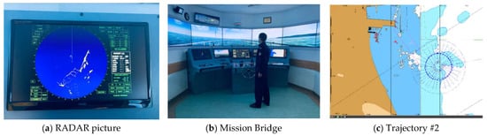 Simulation of the ship’s movement in accordance with the assumptions made in the Navigational and Maneuvering Simulator Group of the Polish Naval Academy. (a) RADAR picture of the simulated trajectory, (b) mission bridge (c) simulated trajectory # 2. Photo: Ł. Marchel.
