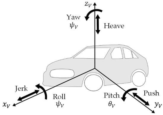 To track the driving states of a vehicle, its spatial motion must be specified. Figure 1 shows the spatial motion of a car, using the body-fixed coordinate system . The Center of Mass of the body is the origin of the coordinate System .