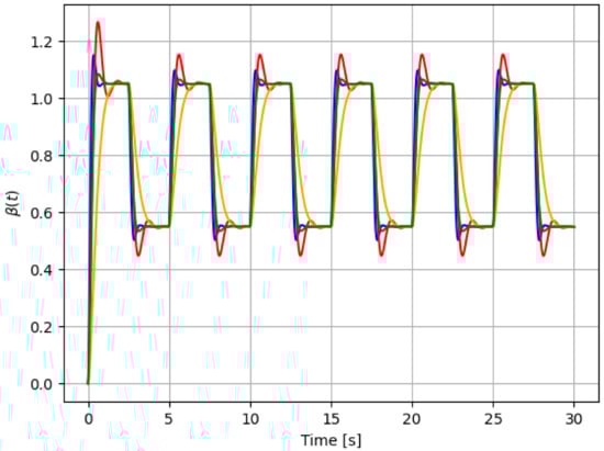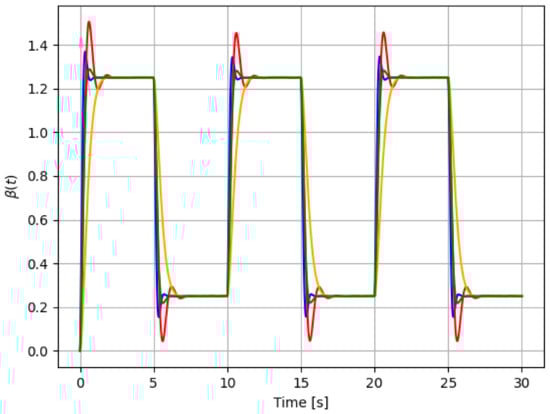 Pitch actuator responses to command in Figure 5: H (blue), (red), (orange), and (green).