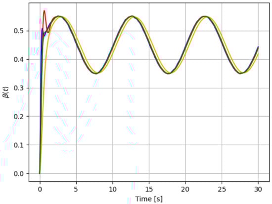 The iterative learning theory used for adaptive learning of a process is a key factor in many iterative learning control frameworks [17,18,19]. Therefore, an appropriate mathematical model of the pitch system will be important, and as simple as possible to perform a simple adaptive iterative learning method to our main objective. Furthermore, an iterative learning control has been used to improve control performance of proportional controllers and derivative ones [21]. Simulation results are given in [21] to support this affirmation. In [22], an iterative learning control theory is employed in a first-order hyperbolic system that helps improve controller robustness on desired time-varying trajectories. This is also supported by performing numerical examples of given hyperbolic systems. In addition, [23] shows the realization of the synchronization of non-identical neural network systems that have a variable delay in time coupled by means of an iterative learning control. According to the simulation results shown in [23], the synchronization objective is satisfied. Finally, in [24], iterative learning control is applied to a novel computational fluid dynamics model to show the performance of the controller in improving the aerodynamic load of wind turbines. In the same way, we will use numerical results to support our main contribution.